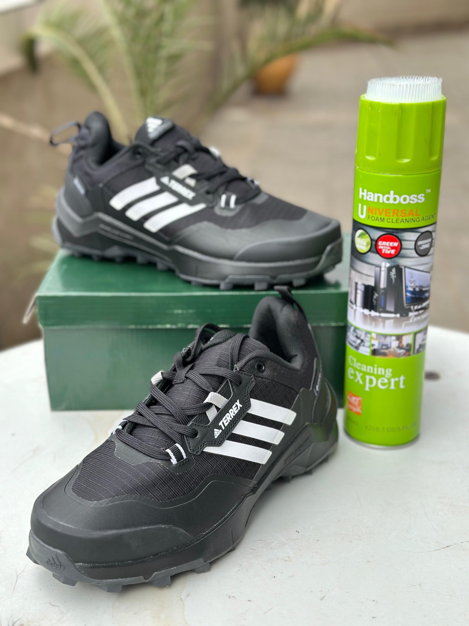 The Adidas Terrex Black/White Stripes offers a blend of durability and style, designed specifically for outdoor enthusiasts. Featuring robust construction and a grippy sole, it ensures reliable traction on varied terrains. The black base with signature white stripes provides a sleek, professional look while maintaining functional performance for hiking and trail activities. Ideal for athletes seeking dependable footwear with a refined aesthetic.
