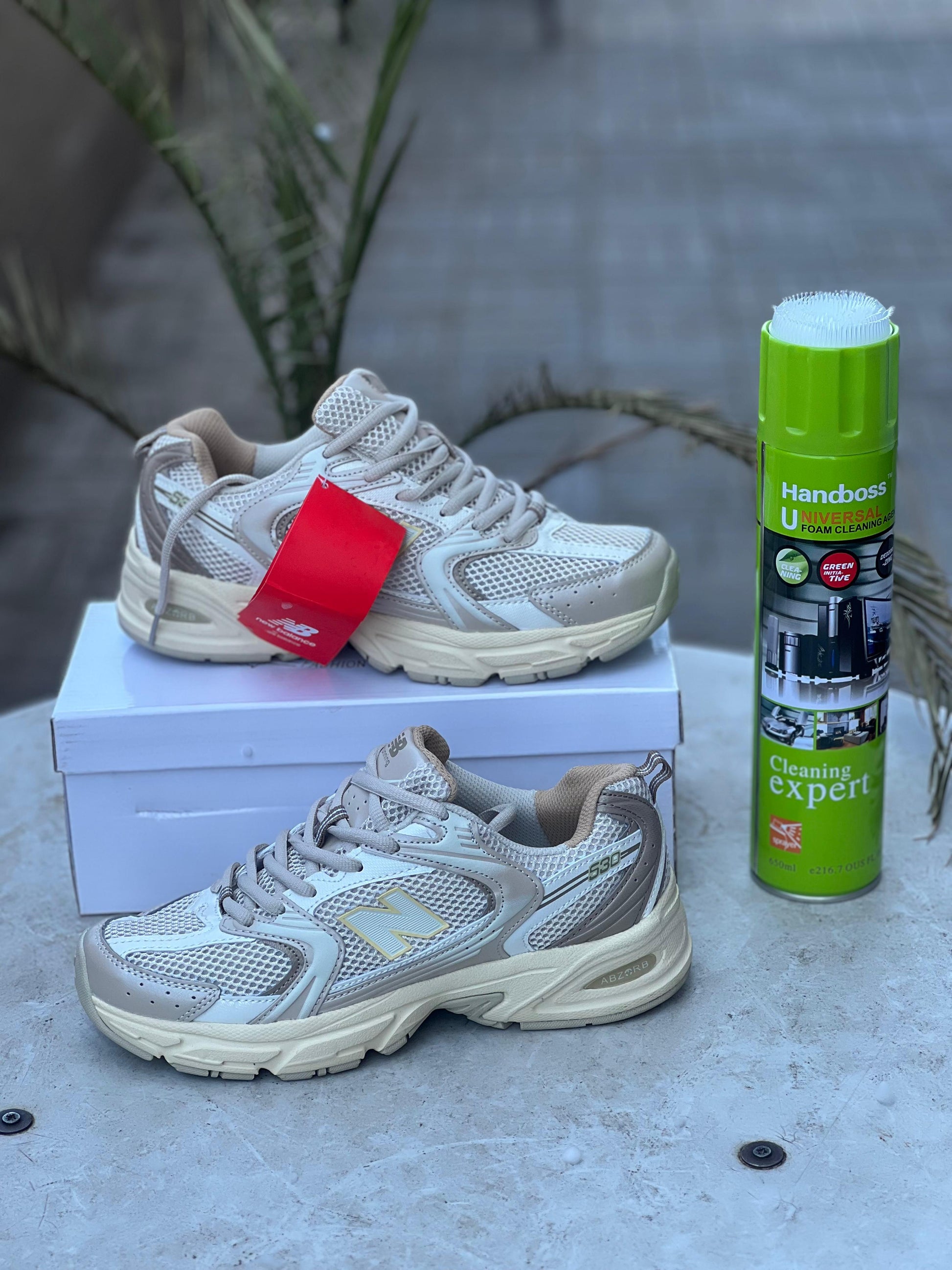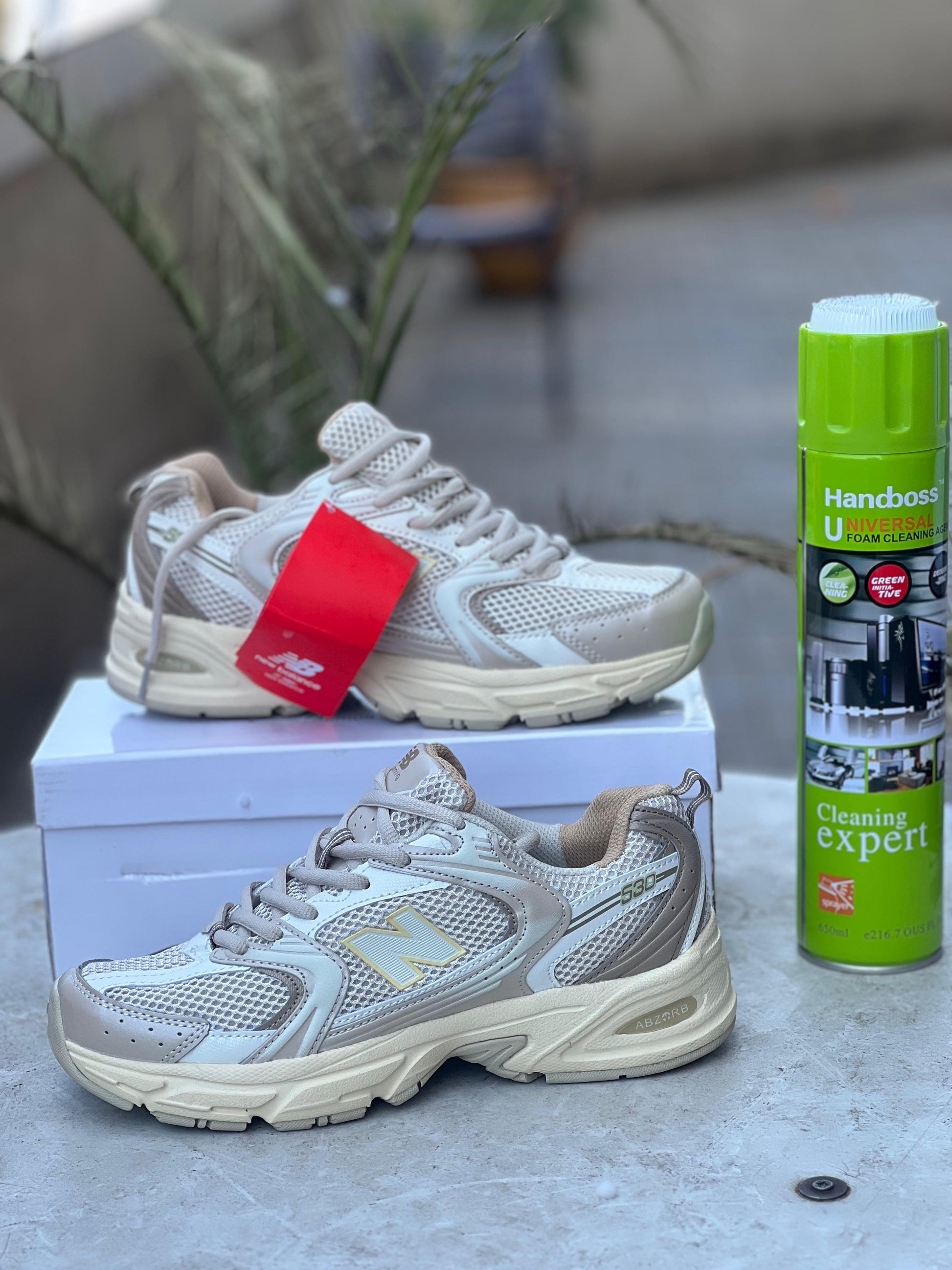 Bring timeless style to your wardrobe with the New Balance 530 – Beige/Gold. Designed with a mesh upper and synthetic overlays, these sneakers combine breathability with durability. The soft beige tones accented with subtle gold details give them a refined, versatile look that pairs effortlessly with both casual and sporty outfits. Featuring ABZORB® cushioning technology, this shoe delivers unbeatable comfort and shock absorption for all-day wear.