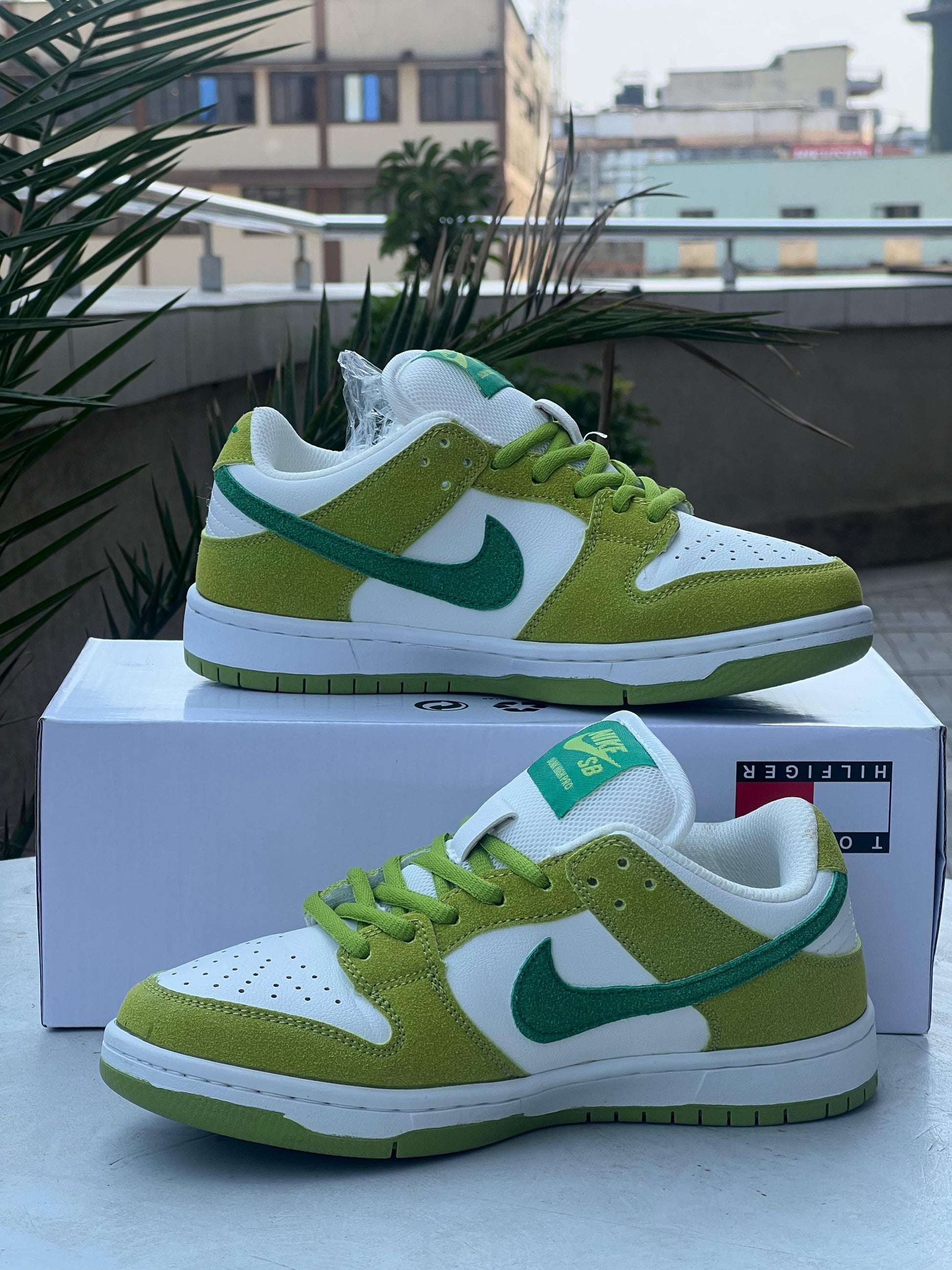 Bring fresh energy to your skate rotation with the Nike SB Dunk Low “White & Forest Green.” This classic low‑top silhouette marries crisp white leather underlays with vibrant green suede overlays and a deep forest‑green Swoosh for a bold, nature‑inspired palette. Built for performance with Zoom Air cushioning, a padded collar, and a grippy herringbone outsole, the SB Dunk Low delivers the durability, comfort, and board feel every skater needs—while turning heads on the streets.